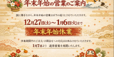 平素より格別のご愛顧を賜り、誠にありがとうございます。当店の年末年始の営業日程について、下記の通…