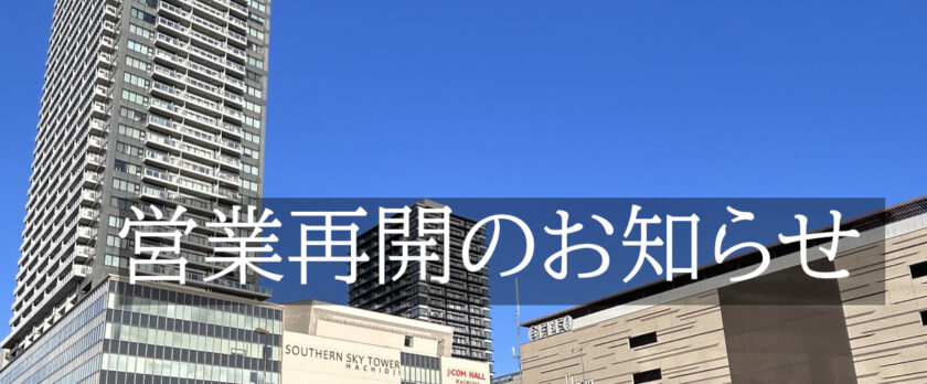 しばらくの間、臨時休業しておりましたが、7月1日より営業を再開します。 休職中は、お客様にご迷惑をおかけいたしましたこと、心よりお詫び申し上げます。 今後も体調管理には気を付けながら皆様のお役に立てますよう、より一層精進して参る所存でございます。 引き続き、これからもどうぞよろしくお願い申し上げます。